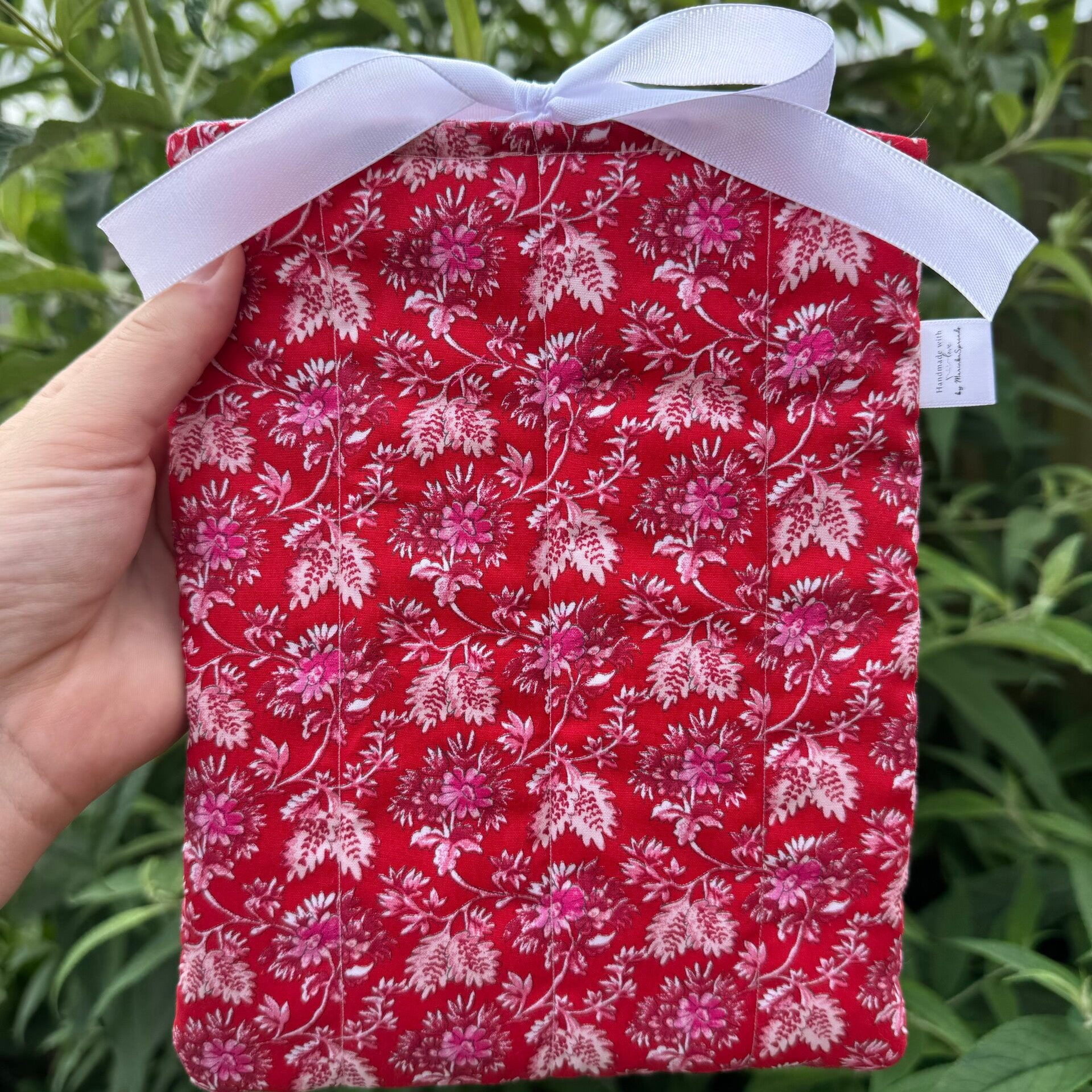 Of je nu een journal, boek, tablet of iets anders wil beschermen – deze handgemaakte hoes past zich met liefde aan. Gemaakt van zachte stof met een romantisch bloemenmotief en afgewerkt met een elegante strik. Praktisch, charmant en veelzijdig.